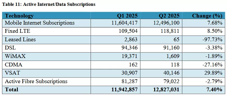 Active VSAT subscriptions increased from 30,907 in the first quarter of 2025 to 40,146 in the second quarter of 2025.