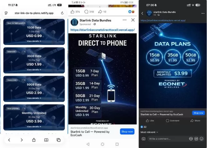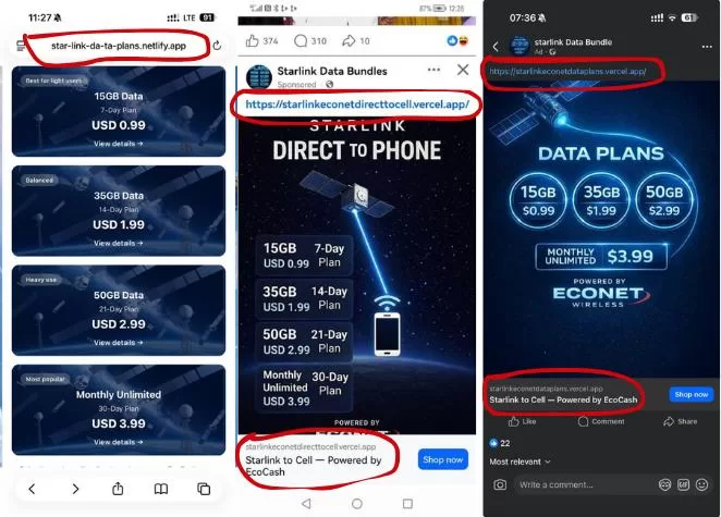 Some of these websites use Econet branding and claim to be “Powered by Econet”, offering deals like 15GB for under US$1 or unlimited data for around US$4. Others promise instant loans ranging from US$50 to US$5,000, claiming that everyone automatically qualifies.