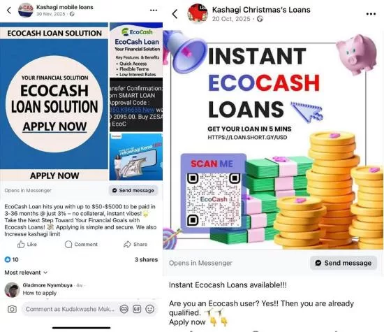 Instant loans claiming to be EcoCash loan products, such as Kashagi